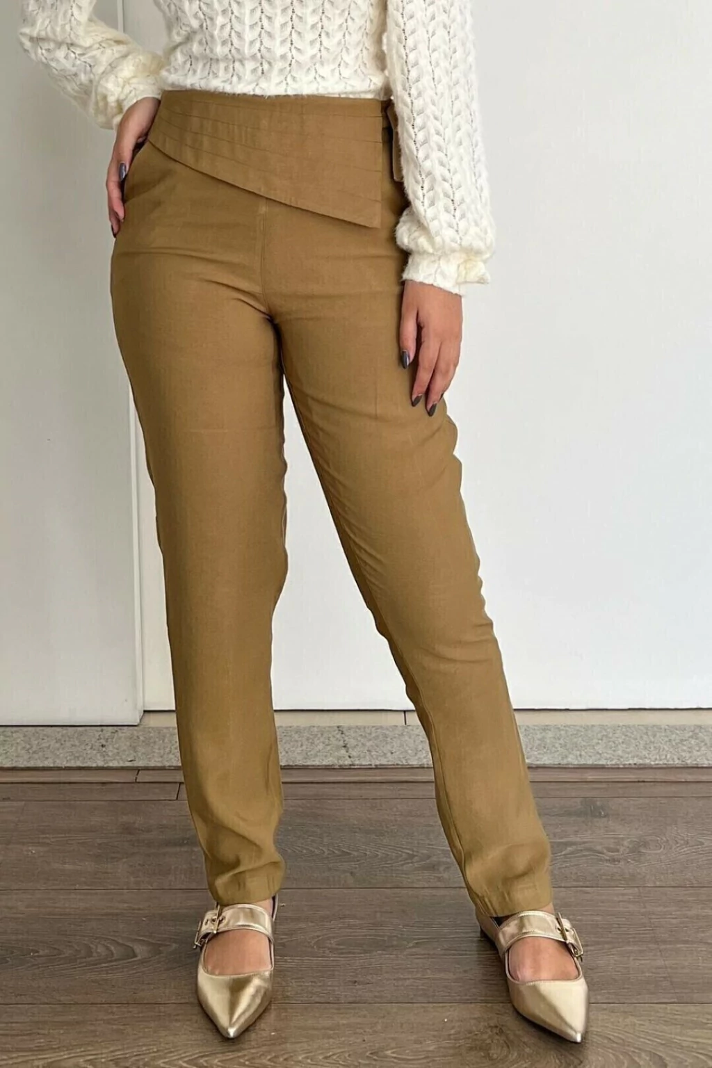 Calça tecido sensoriale na cor quaker, cós alto com pala pespontada e cordão lateral para laço, fecho lateral em zíper embutido, bolso faca frontal e bolso traseiro embutido. Elegância e estilo em um conjunto super confortável.